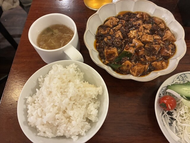 並んでいる時にメニュー渡されて口頭注文しました。今日は1番人気の麻婆豆腐にしました。スープとライスとサラダもついてます。
