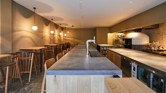 トトトトト。厨房の音が鳴り響くような、窯を中心としたオープンでライブ感ある空間でピザを!