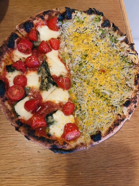 鳥取県産「大山こむぎ」でつくる風味豊かな生地に、旬の魚介や野菜を贅沢に乗せ窯で焼くピザが自慢です。