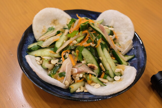 私はこのエリアで外食の選択肢が増えることを望んでいますので、是非続いて欲しいと思っているのです。タイ料理とは調理法が違ったり、初めての料理もあり楽しめました。しかし、春巻きや手羽先など、メニューの写真と、出てくる個数が違うもの、写真と個数が同じもの、写真とは違うが個数が明記してるものなど表現が色々で、出てきたものと写真の違いに混乱しました。生春巻きには写真と異なりエビが入っておらず、代わりに茹で豚...