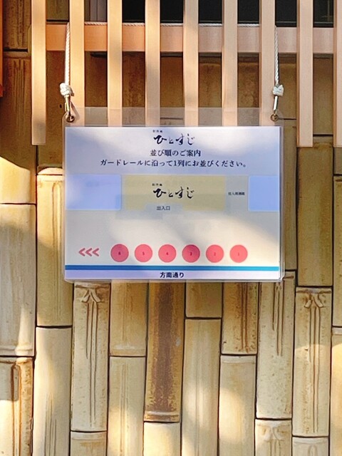 百名店発表の週末土曜日に訪問12時50分着、35名待ち、通りがかりのカップル何人か「なんの行列?」「コレは新百名店効果だねー」などという感じ。かくいう私も唯一の行けてなかった店舗で、慌てて来店。ヒトは行列が気になるものなのね。