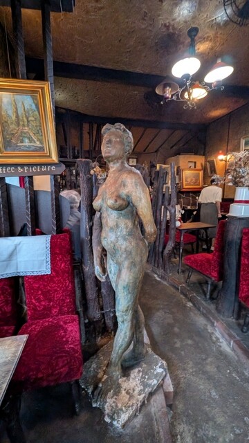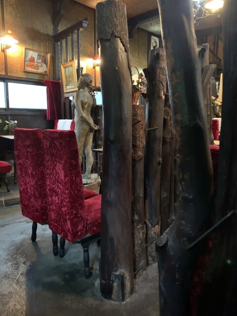 14時過ぎ、緑に囲まれた入口から店内に入ると、先客の姿は無く、超高齢のマダムが手前左の4人掛けテー...