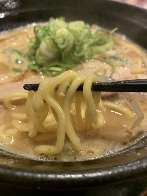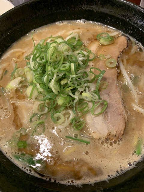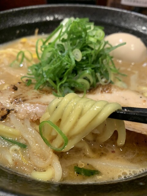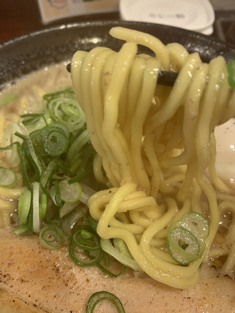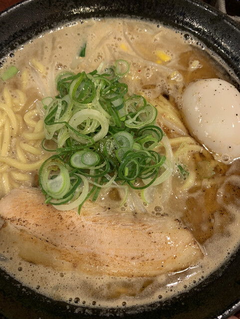 どろどろで油で熱々のスープ!麺はしっとりしていて、スープが絡む。チャーシューは柔らかく、味も染みてて美味しい。トッピングの味玉は中身は半熟。スープに浸して旨かった。半ライスに卓上のカレー粉をかけて、レンゲの上でご飯とスープを混ぜたら、カレーライス!お腹いっぱいになり、満足な一食。