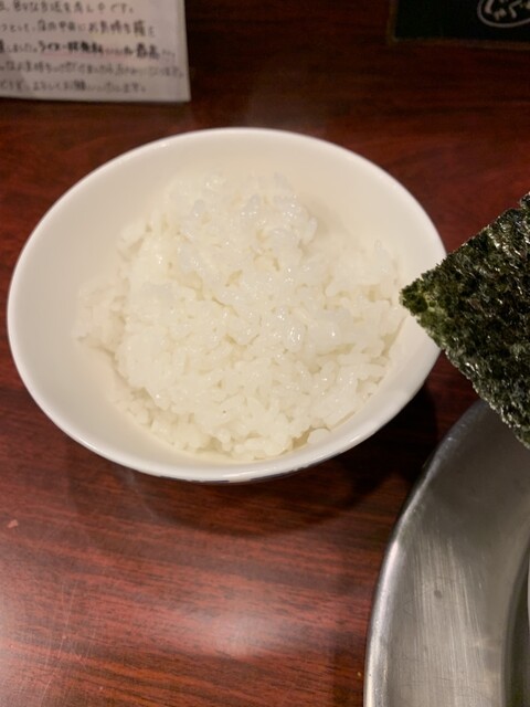 マー油が香る豚骨味噌スープ。濃厚で美味しい。麺の茹で加減はやや固め。もう少し柔いほうが好み。半ライスは嬉しい。レンゲにスープ、ライスを投入して、卓上のカレー粉を少し振りかけて、カレーライスの出来上がり!これが旨い!平日ランチは大盛無料とのポップがあった。そういえば前回は平日で大盛を頼んだかも。
