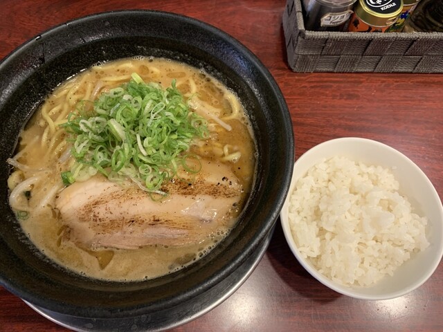 豚骨味噌ラーメン、太麺、黒マー油+半ライス