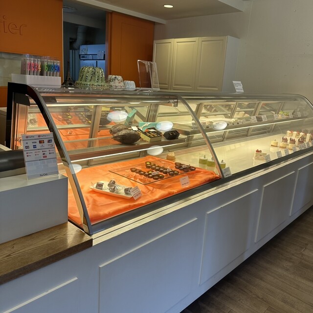 オレンジ色の外観が目印で、フランス菓子の名店