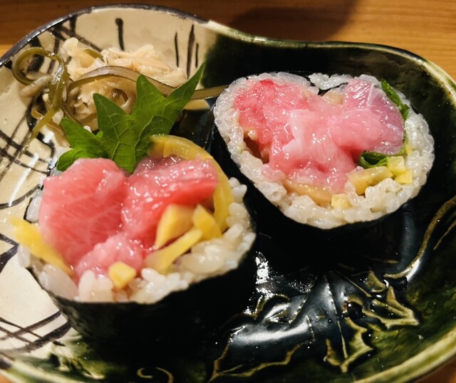 本物のトロタク太巻と自家製ソフト唐墨が良かった。土曜だったので食材の仕入れがベストではなかったかなぁ。ひとり1万超って⁇