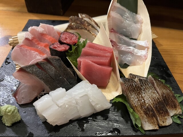刺身盛りはそれぞれ炙られていたり薬味が乗せられていたりと、丁寧でこだわりが感じられるお店、、、✨