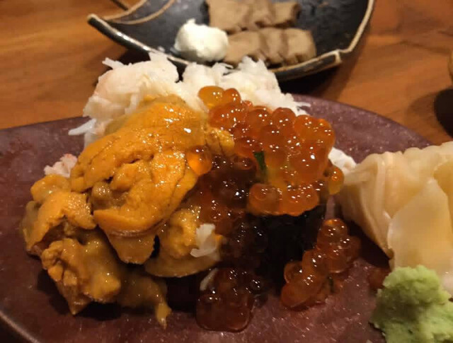 ウニイクラカニ溢れ寿司に、うにくまき‼️かにくいくら巻き‼️カラスミそば、白子ポン酢、揚げ物‼️タ...