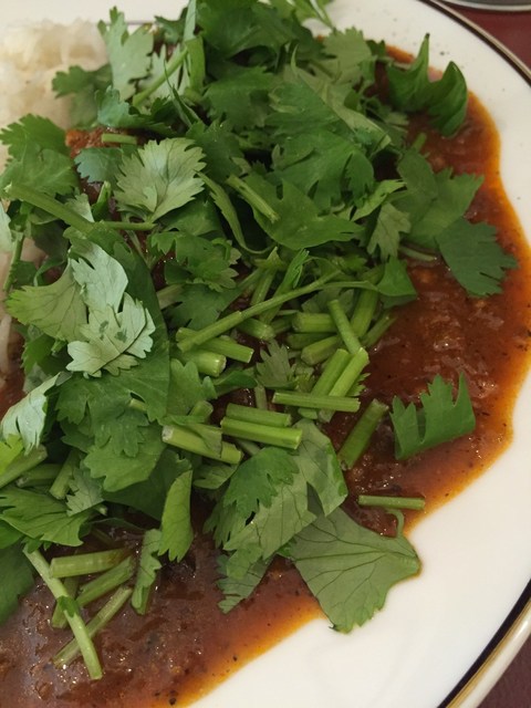 「ペッパーチキンカリー」900円に「パクチートッピング」100円を追加