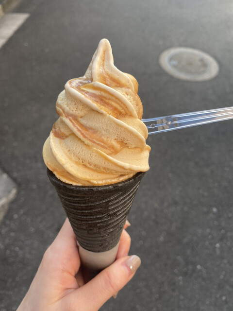 前から通るたびに気になっていた、濃厚生キャラメルソフトを食べました。 キャラメルソースが入っていてとても美味しかったです。限定のブラックコーンも素敵。 詳細を見る