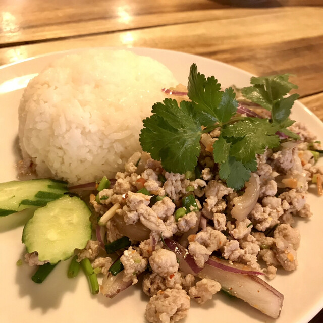 タイとラオスが味わえる料理をお楽しみいただけます。サバイディーシェフはタイと日本の高級料理店で経験があり、味はラオス人も認めるほど(^^)全ての一品料理はとてもリーズナブルな価格にしていますので、ディナーで美味しいアジアビールと一緒に楽しむのがオススメです!メニューに迷ったら『ピンガイ』『豚トロ焼き』『カニと卵カレー炒め』『春雨むし』が人気メニューです。皆様のご来店お待ちしております。