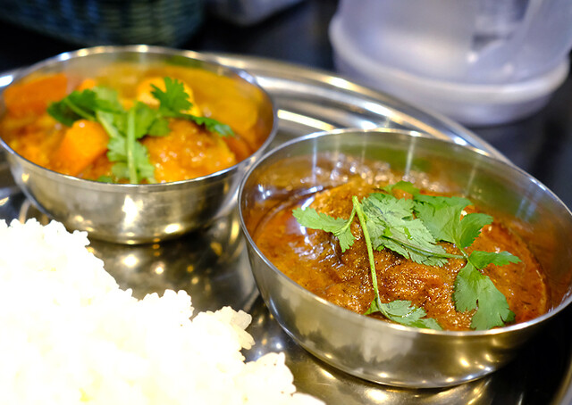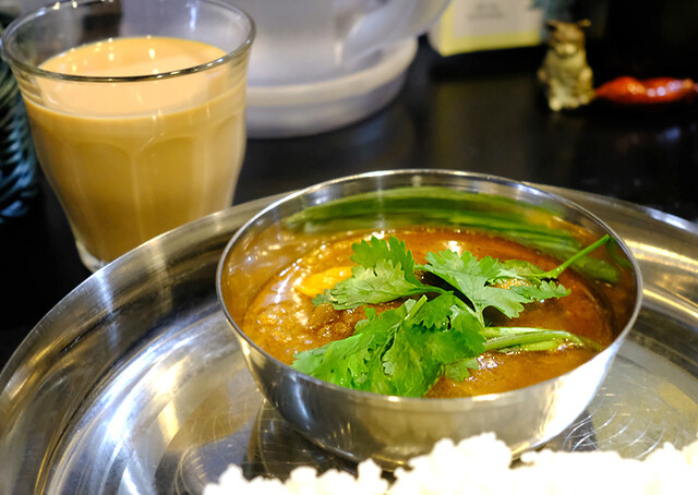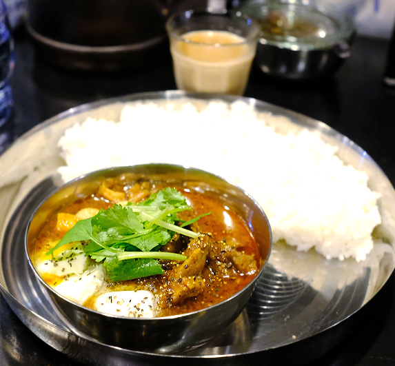 大江カレーは、スパイス効いたオリジナルカレーと、自家製の甘味ドリンクを楽しめるお店です。