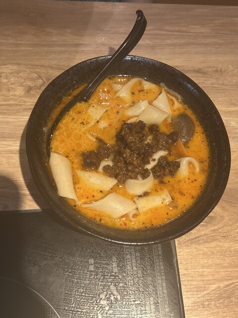 西安風酸辣湯麺のビャンビャン麺にしました。ラーメンやら他の麺も選べます...