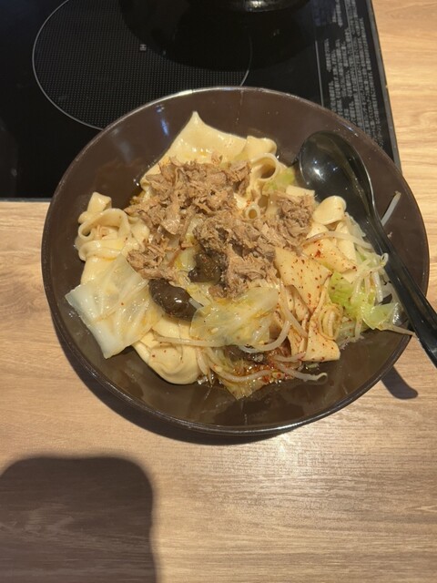 ジャンビャン麺を食べた感想として、まず濃厚な辛味と深いコクのあるスープが印象的で、麺にしっかり絡んで一口ごとに満足感が広がりました。さらに薬味・ご飯・デザートがおかわり自由という嬉しいサービスのおかげ...