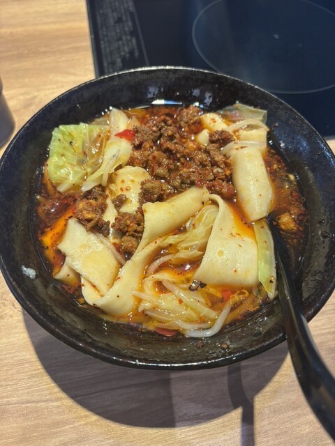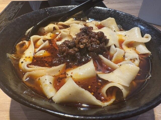 高円寺駅近くで話題の「ビャンビャン麺火鍋成都」さんに伺いました。中国・陝西料理の名物であるビャンビャン麺を本格的に味わえるお店で、看板メニューの一つ「担々ビャンビャン麺」を注文しました。