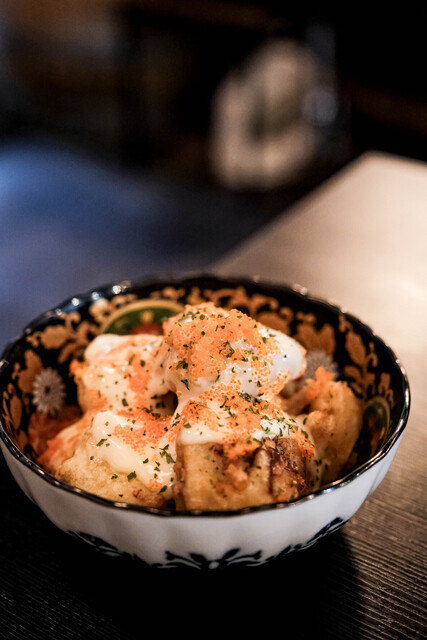【menu】 ⚪︎とろとろ鶏レバー ⚪︎タコとアボガドの自家製ちりポン酢 ⚪︎75℃のぷるぷるだし巻きたまご ⚪︎トリマヨ ⚪︎豚タン刺し ⚪︎とびっこトリュフ薫るTKG ⚪︎ばか同士。ハニートースト 高円寺にある、夢の国をテーマにした創作居酒屋。 店内は、ディズニーの音楽... 詳細を見る