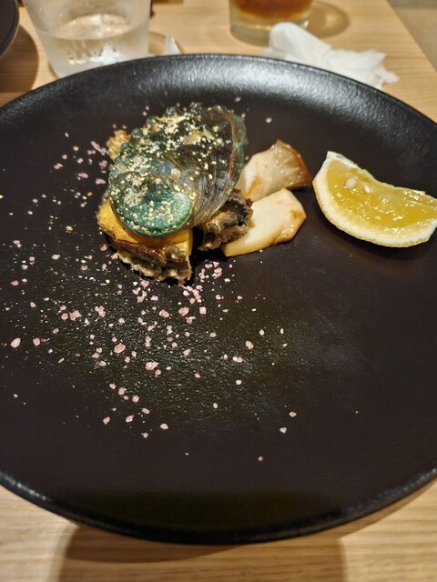 鮑や厳選牛サーロインを主軸としたコースを展開し、アラカルトも充実している。