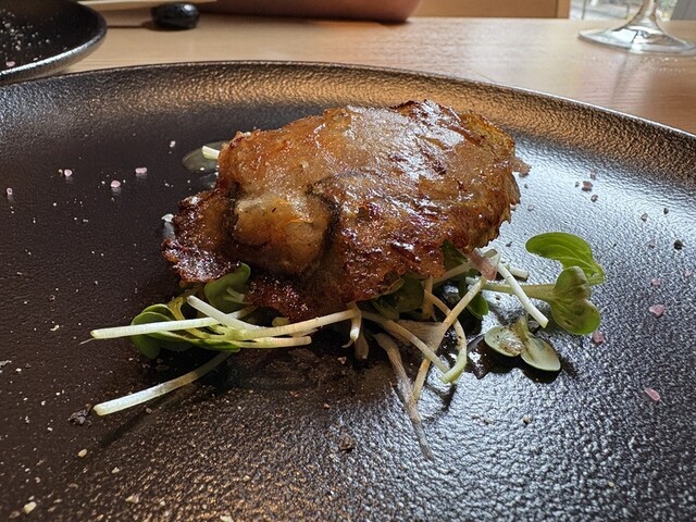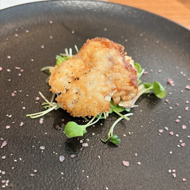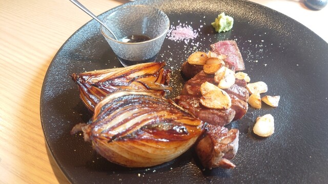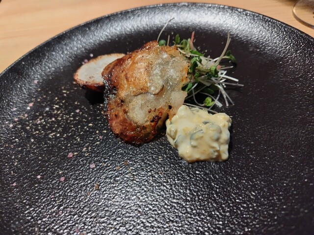 まず前菜のパルメザンチーズと岩中豚のサラダからして、素材へのこだわりを感じます。濃厚なチーズと上質な豚肉のハーモニーが、食欲を優しく刺激してくれました。続いて、旨みが凝縮された広島県産 牡蠣は、磯の香りと鉄板焼きの香ばしさが融合した絶品。
