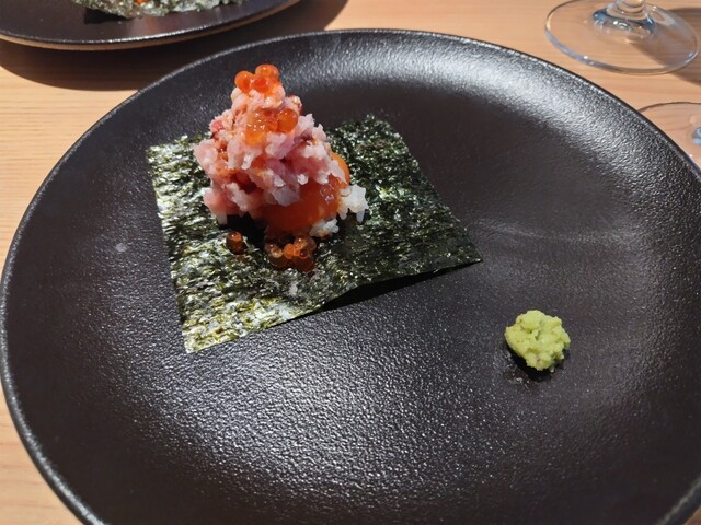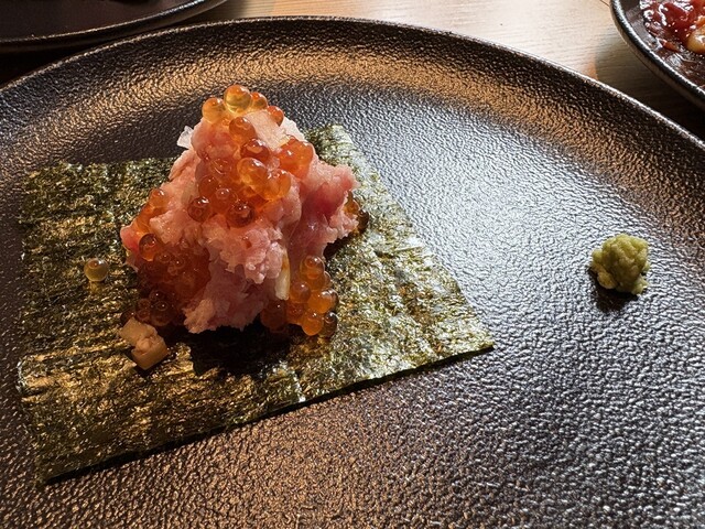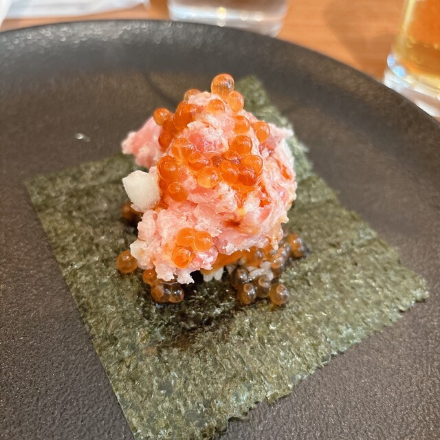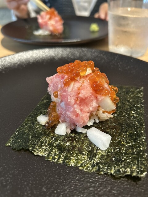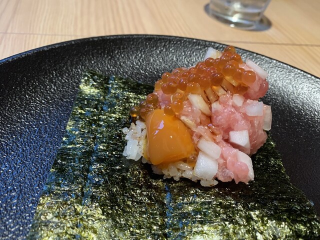 何度かリピートしてますが、本当に美味しくて、またすぐ行きたくなります。サラダは盛り盛りでドレッシングが美味しい。ネギトロいくらは、醤油漬け卵黄がとてもアクセントになってます。カキかエビか海鮮を選べます...