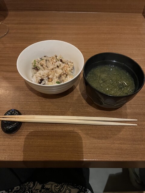 〆のガーリックライス、お味噌汁が出てきました。