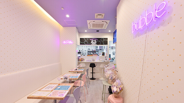 可愛いを追求した当店。チョコミントのドリンク・スイーツが人気で、見た目と味にこだわった一品をご提供しております。その他手ごねハンバーグやカレーなど、お得なランチプレートもご用意!パステルパープルを基調としたPOPな店内には、マスコットのbubbleくんもいます☆ご近所の方はもちろん、推し活・オタ活をしたい方・チョコミン党の皆様にもおすすめです♪老若男女問わず楽しめる空間で、素敵なひとときをどうぞ◎