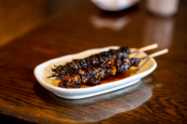 続いて「肝焼き」は秋田 稲波 無濾過純米を熱燗でいただきます。