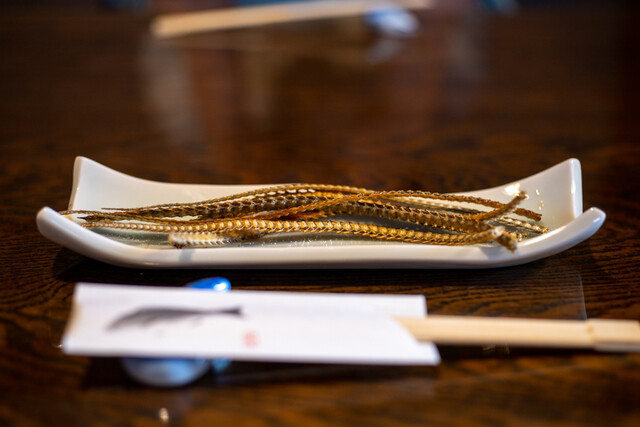 まずは「骨せんべい」と冷たいビールで乾杯。