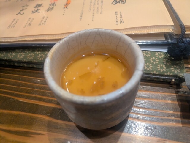 お通し代495 円(税込)茶碗蒸し(夏季のみ『冷製茶碗蒸し』となります。) なお、コースはお通し代込のお値段となります。 |