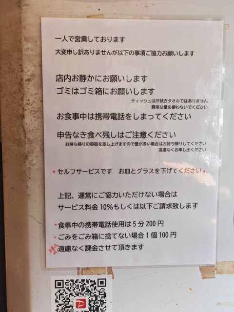 カード不可 電子マネー不可 QRコード決済可 (PayPay) |