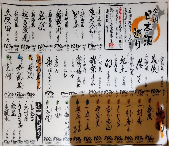 | ドリンク | 日本酒あり、焼酎あり、ワインあり、カクテルあり、日本酒にこだわる、焼酎にこだわる |