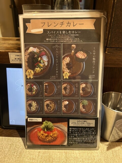 ウフ・マヨとスペシャルフレンチカレーで合計2420円です。カウンターの席で8時過ぎに行くと満席だったので外で待ちました。美味しかったですね。フレンチのオードブルが目白押しでした。ワインも楽しむことがで...