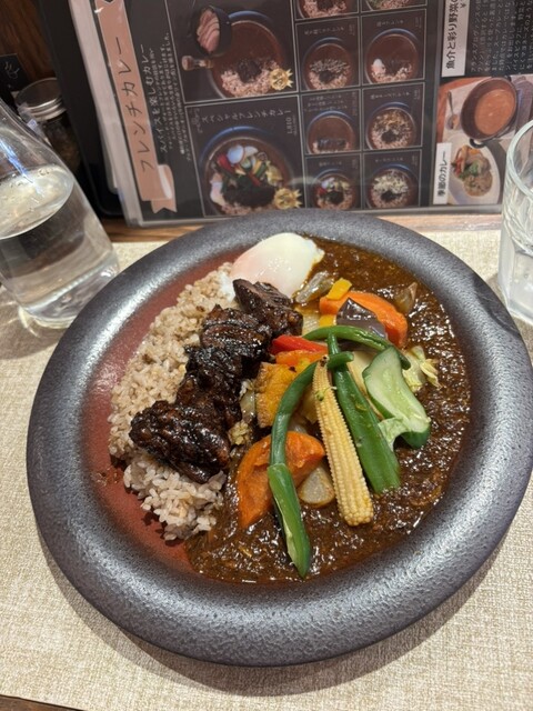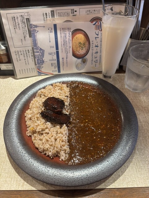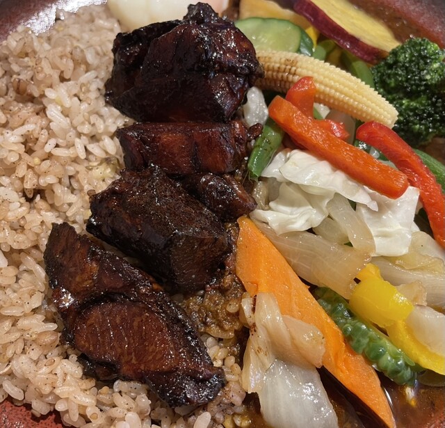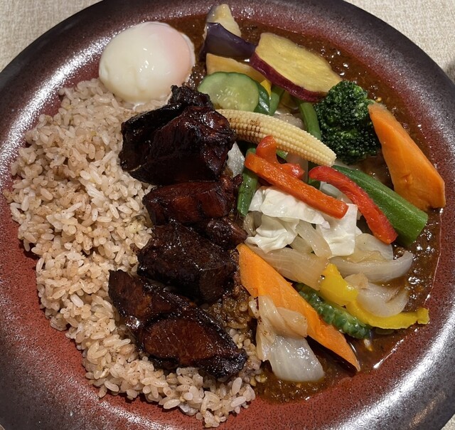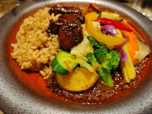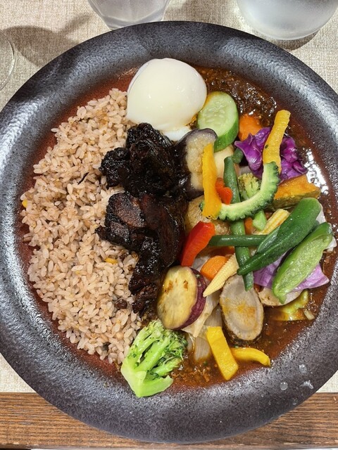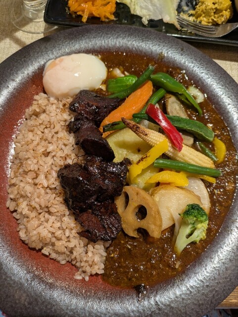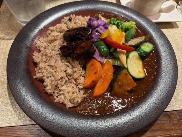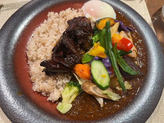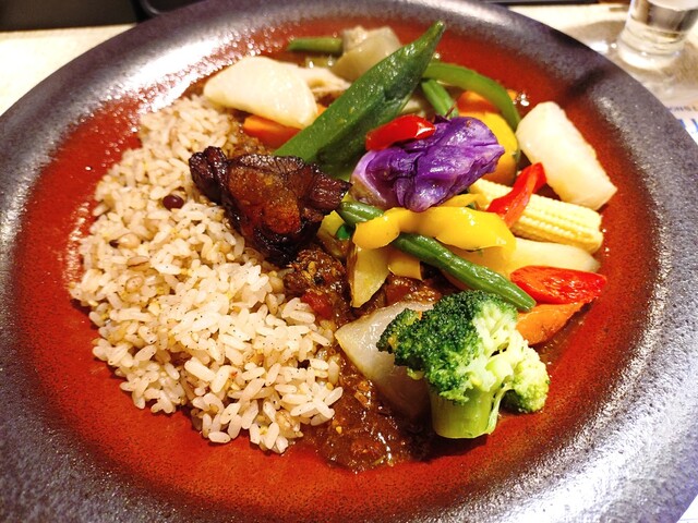 ご飯: 雑穀米なのが特徴的。パラパラで粒立っており、カレ...