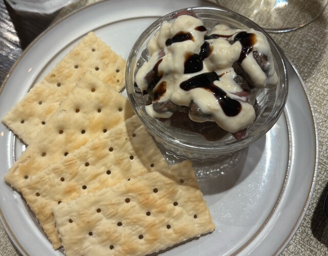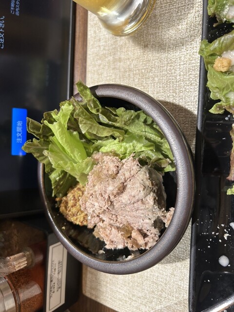 平日20時に訪問、6名様が先客。2席のみの空きでした。タブレットから注文です。平日限定の夜のセットメニューをお願いしました。さぁ!と意気込んで待っていると、2品選べる前菜のうち、ウフマヨが品切れとのこ...