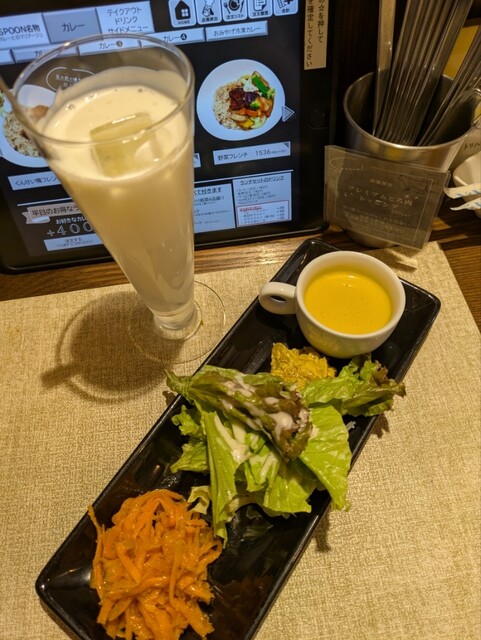 「スペシャルフレンチカレー1990円」「セットサラダ440円」「ラッシー290円」を慣れないタッチパネルで注文しました(汗)...