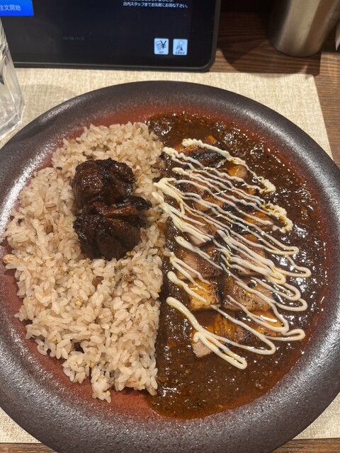 飲み会帰りに無性にカレーが食べたくなって、フレンチカレー スプーンさんへ。今回いただいたのは 炙り豚バラフレンチカレー(1590円)。