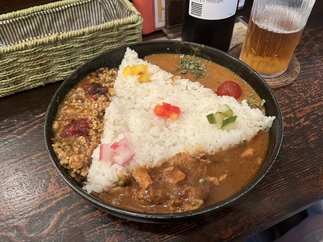 2月1日(木)19:30到着。2人です。 きざみ野菜のチキンキーマがたまらなく食べたくて、久しぶりにやって来ました。 ◆きざみ野菜のチキンキーマとポークビンダルーの2種盛り(辛... 詳細を見る