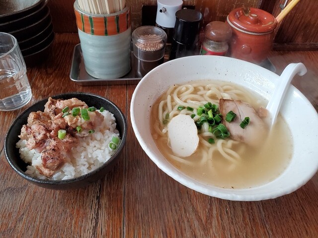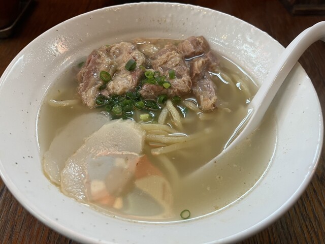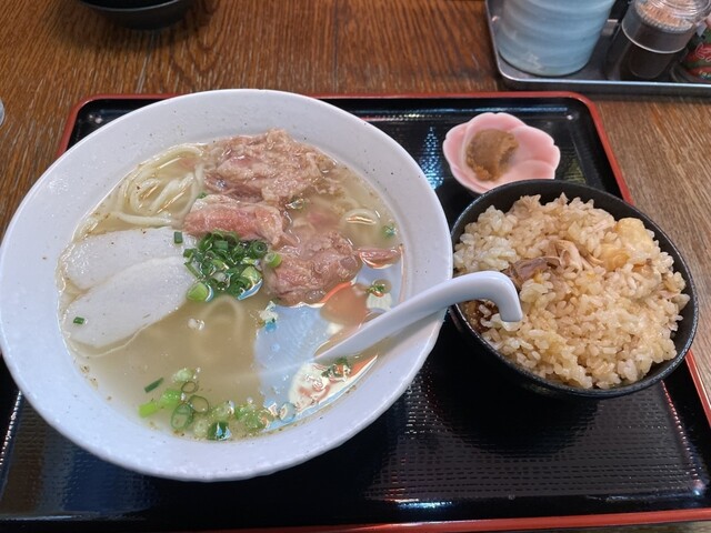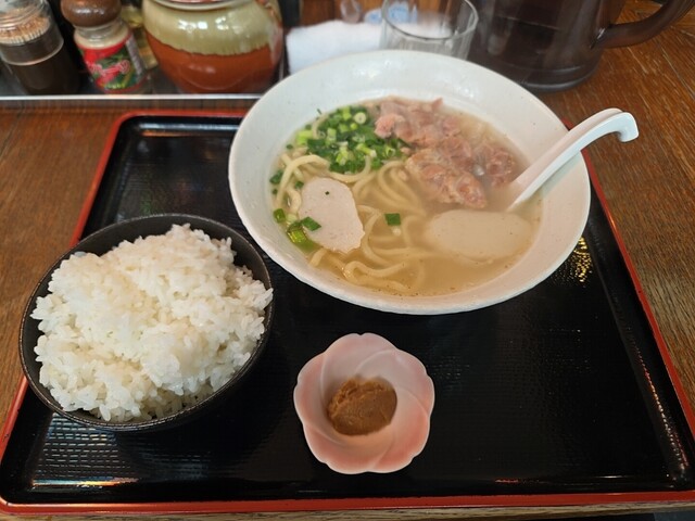 平日11:15ごろお邪魔しました。 先客2組。 ソーキそば定食(1,000円)をご飯をじゅーしーにチェンジ(50円)でお願いしました。 こちら紅生姜は牛丼チェーンのように壺に入って卓上に置かれています。 5分ちょいで提供されました。 じゅーしーが山盛りです。 まず何も入れずにスープをいた... 詳細を見る