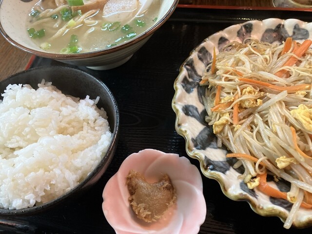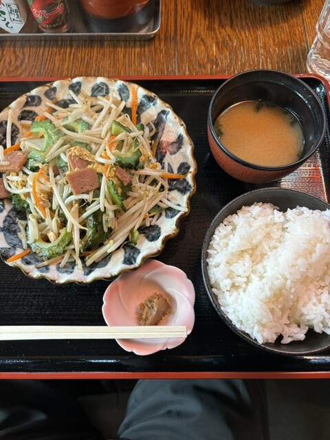 自分はソーキそば、連れはゴーヤチャンプルの定食です。