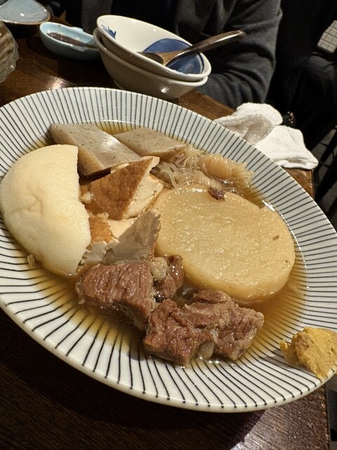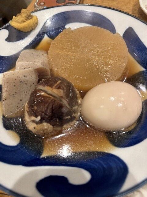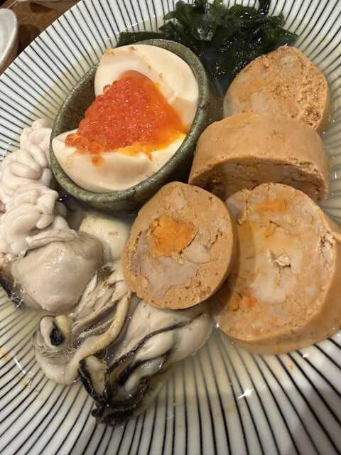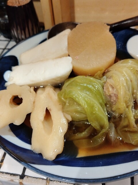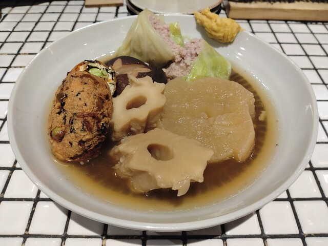 これは何を食べてもある程度外さない料理満足度の高いお店を見つけられた。自家製のおでんネタはどれも旨い。特にがんもどきとロールキャベツが抜群。メ...