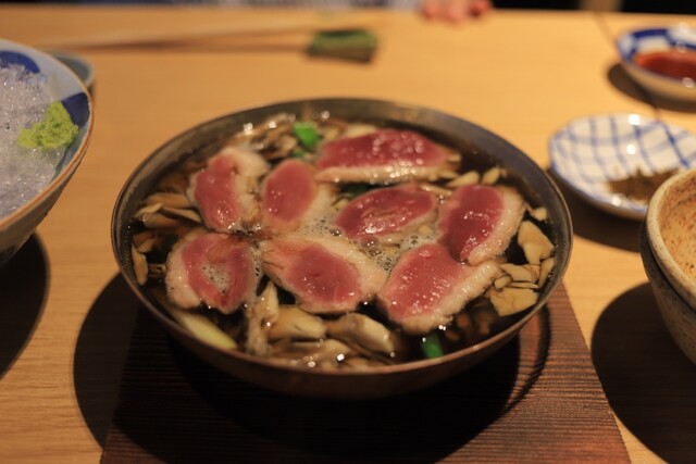 鴨のネギのお鍋は臭みもなく、柔らかい鴨にしっかり出汁もでており、〆の炊き込みご飯も絶品です。