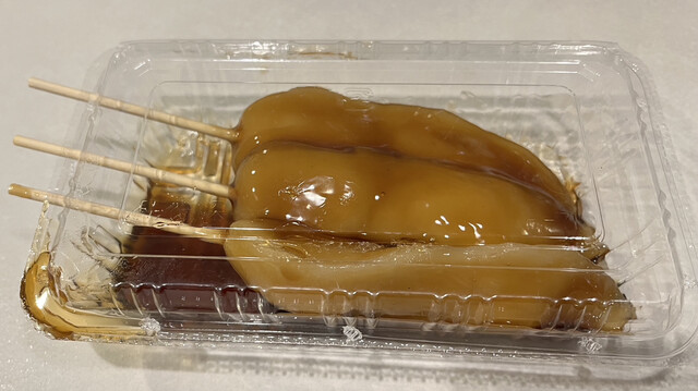 あまりお客さんを見かけたことがないけど、団子やら和菓子を販売している。 みたらし。ミニ五平餅みたいな、そんなビジュアル。 冷えていてももちもちだ。醤油の旨味を感じる。ま... 詳細を見る