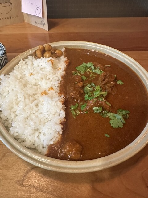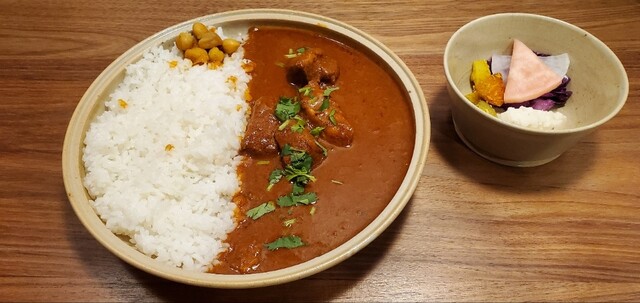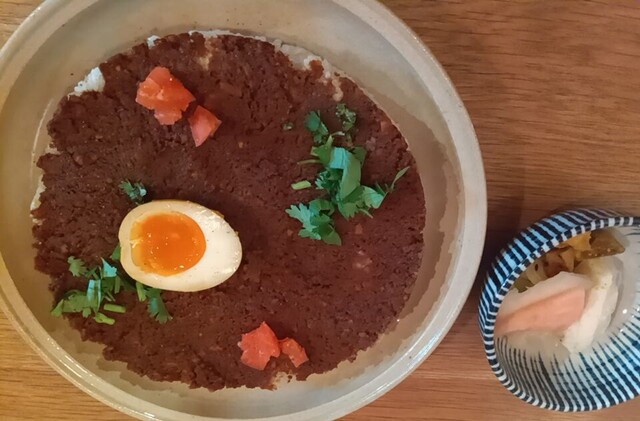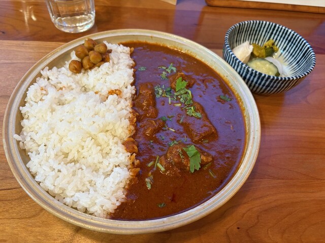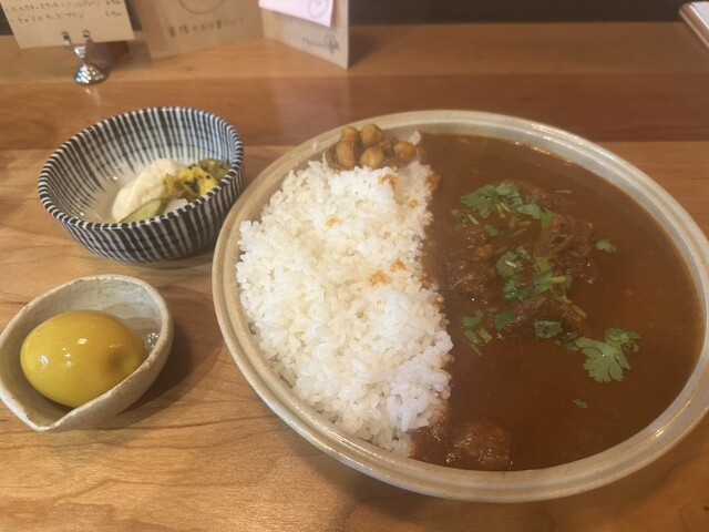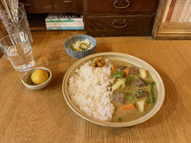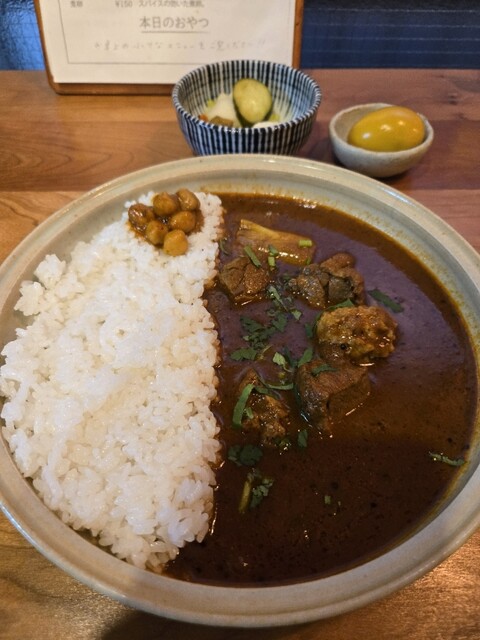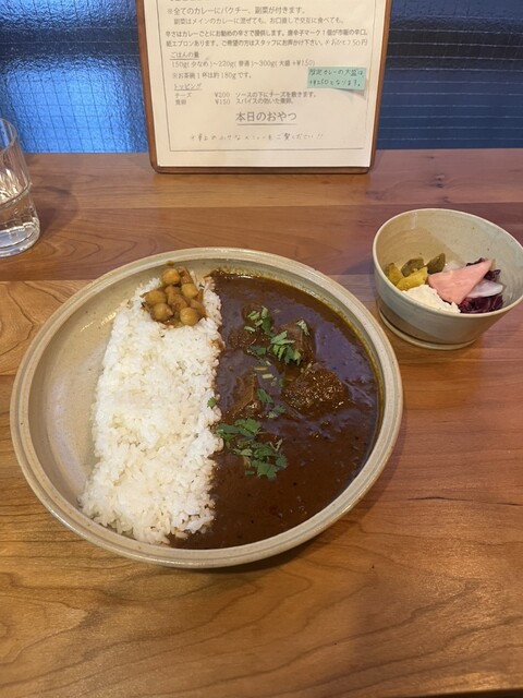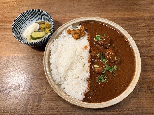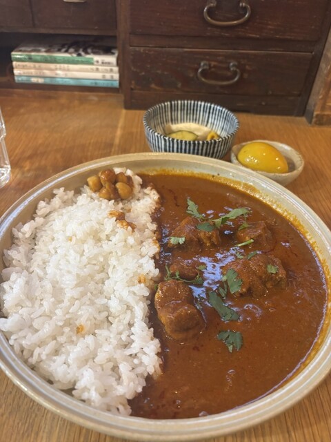 土曜日の16時半に来店。先客は1名のみですんなり入れました。私は限定のエビカレー、連れはドライカレーを頼みました。ドライカレーの方がユニークでおいしかったかな。副菜は酸味が強くて美味しかったです。また...