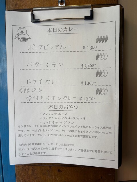 休日の17時過ぎ、1人で来店。西荻窪駅から徒歩5分以内のところにあり、2階にあるので少しだけ分かりづらいですが、カレーの良い香りが漂っていたのでそれを頼りに到着。笑(1階のところに看板が出てます)...