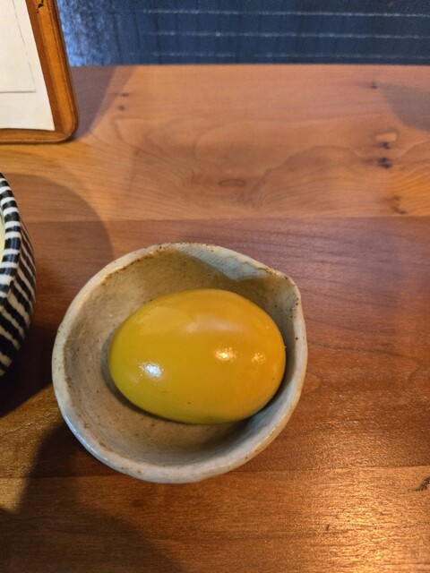 皆さんの口コミを見てポークビンダルーを注文。味玉もつけてみました。