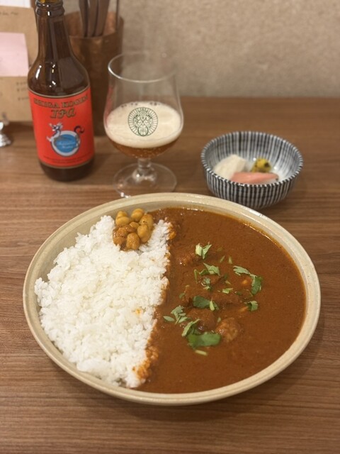 日本米に合う爽やかな辛さのポークビンダルーは絶品✨ビールも最高でした