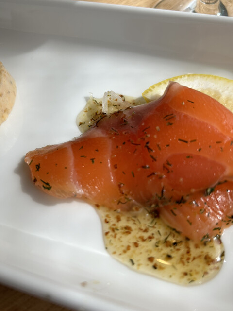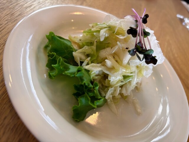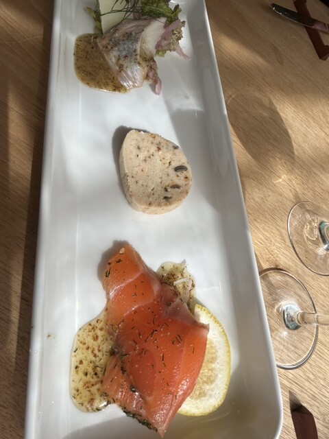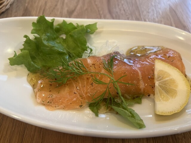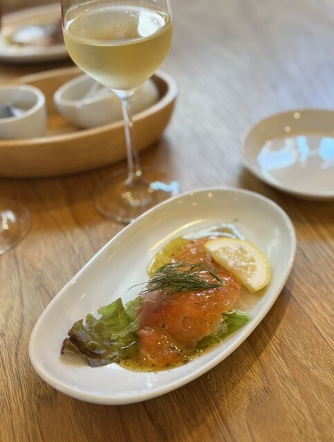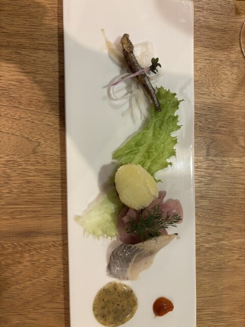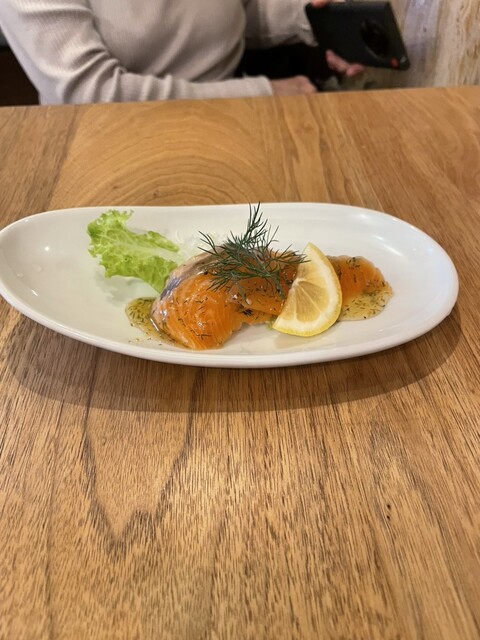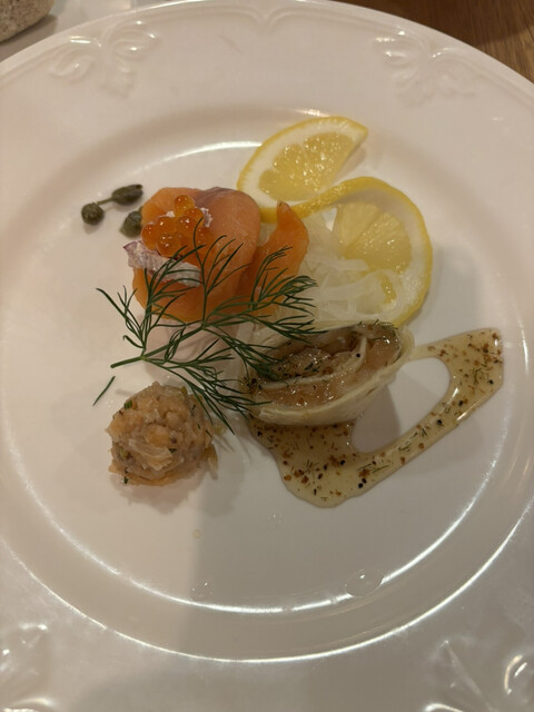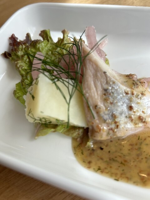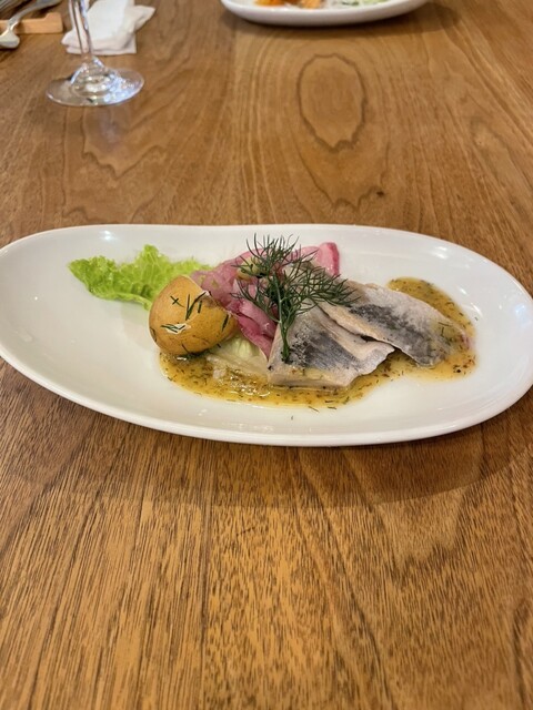 ランチAコースをチョイス!同行者とシェアする形で、前菜は「ノルウェー産にしんのディルマリネ 北欧風マスタードソース」と「ノルウェー産熟成サーモン」、キャベツのサラダ 自家製アンチョビドレッシング、メイ...