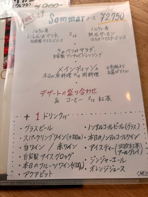 平日限定のSommerコースというのがあったのでそちらにしました。