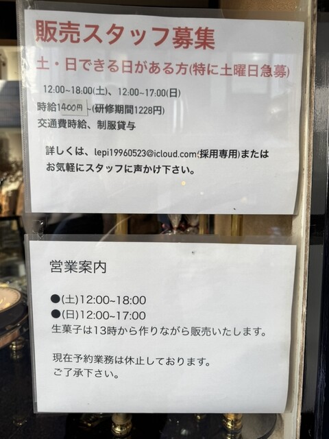 オーナーパティシエ1人で営業しているため