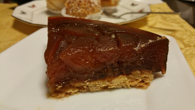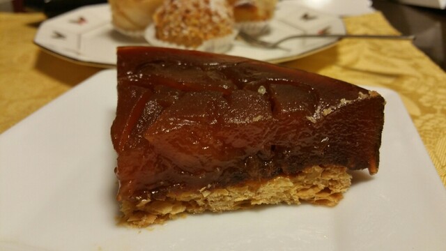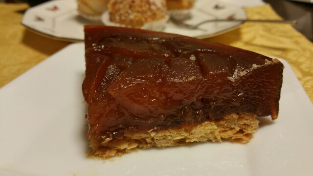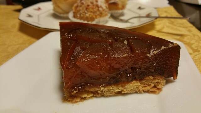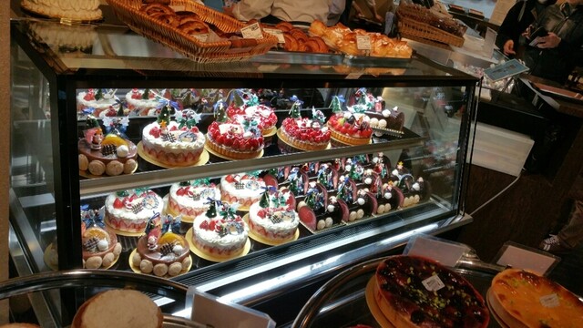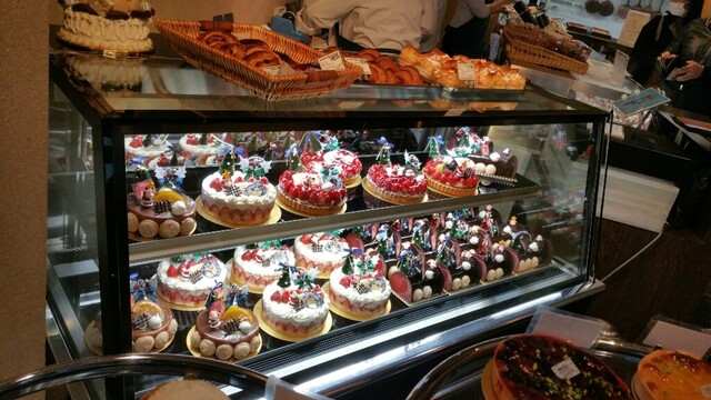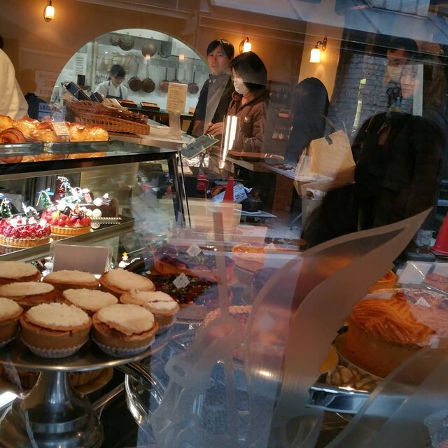 吉祥寺に行列のできる洋菓子店があると聞き行ってみました。師走のクリスマス前の日曜日。正午前に開店していたらしく正午に着いたら既に20人位並んでいました。入場制限していて結局店内に入れたのは12時40分頃。ケーキを予約していた人も並んでいましたが、途中で店員さんが声をかけ先に入店していました。この日はクリスマス前ということでブッシュドノエルやショートケーキ等のクリスマスケーキがショーケースに並んでいました。お目当てのタルトタタンはあってホッとしたのですが、もう1つのお目当てのホールのミルフィーユはまだ出来ていないということで残念でした。タルトタタンホール¥3480、ポンム・レピキュリアン¥430×2、シューパリゴー¥270、ウイークエンド(大)(檸檬シュガーバターケーキ)¥2150を購入。持ち歩き2時間までしか売らない方針のようです。接客は少々上から目線。もう少し優しく丁寧なら良いのになぁ。洋菓子はどれも濃厚で上質でとても美味しかったです。特にタルトタタンとポンムレピキュリアンが秀逸でした。次回はホールのミルフィーユを購入したいです。クリスマス前の繁忙期で喫茶コーナーも閉めていましたし、カットケーキの種類が極端に少なかったので、通常期に訪れたいです。とても美味しかったのでまた伺いたいと思います。